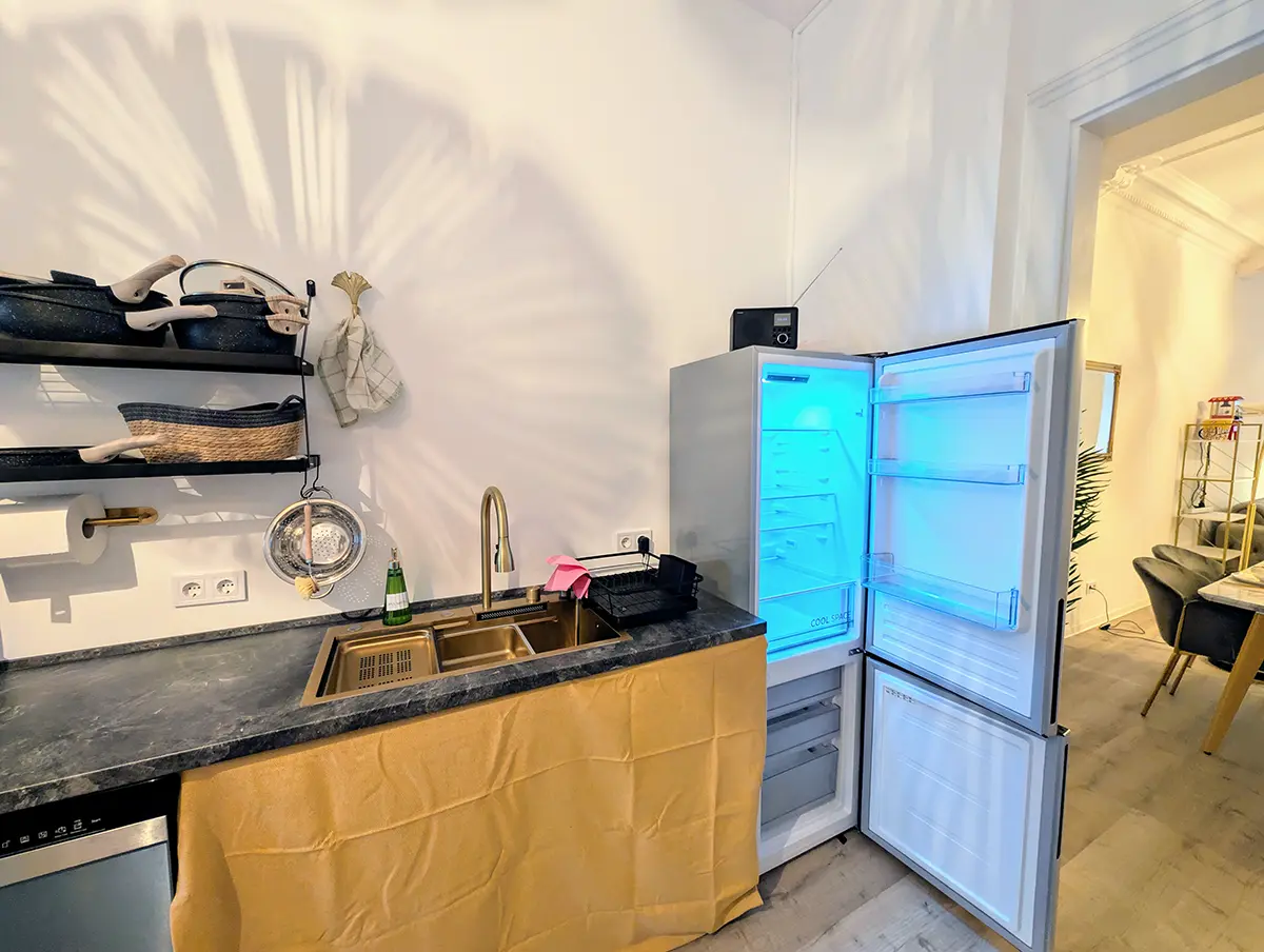 Das Apartment liegt in der einst florierenden Bismarckstraße, die heute mit einem gehobenen Friseur (direkt im Erdgeschoss), zwei Bäckereien und der berühmten „Fleischerei Büchner“ – einer der besten in Sachsen – zum Verweilen einlädt. Ein Supermarkt, das Citycenter sowie ein ausgezeichnetes Fischrestaurant befinden sich nur eine Minute entfernt.