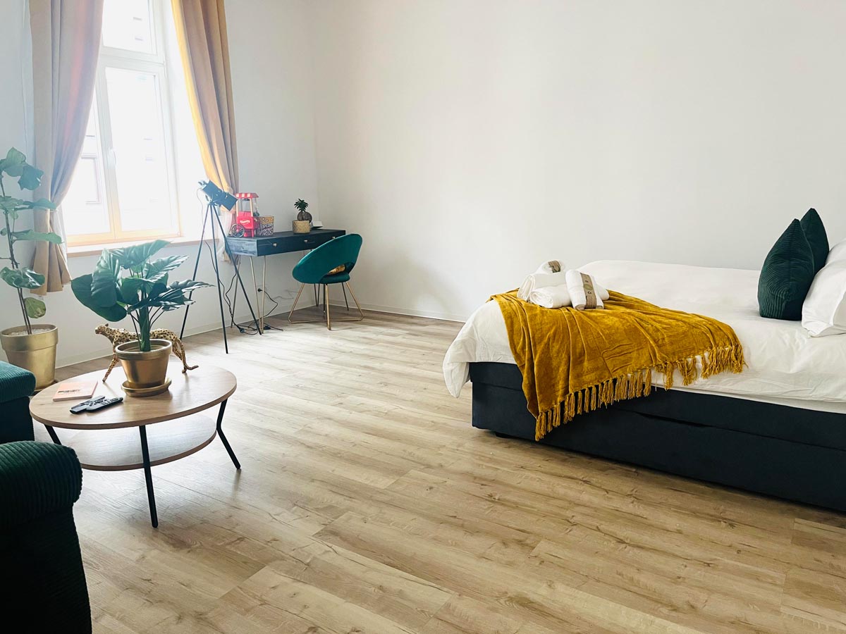 Superior Apartment mit einem Wohn-/Schlafzimmer im Grün-Gold Stil